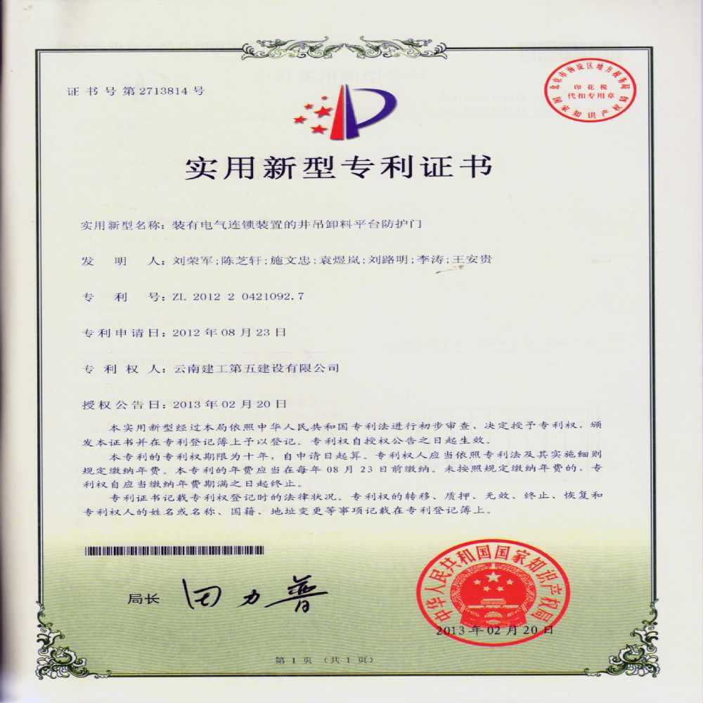 裝有電氣連鎖裝置的井吊卸料平臺(tái)防護(hù)門(mén)