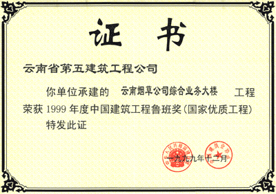 煙草魯班獎(jiǎng)狀