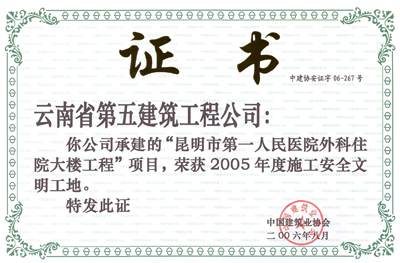 昆明市第一人民醫(yī)院外科住院大樓—2005年度“AAA級(jí)安全文明標(biāo)準(zhǔn)化誠(chéng)信工地”
