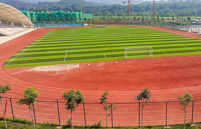 熱帶雨林的螞蟻也很熱情,剛進(jìn)場(chǎng)時(shí),測(cè)量員在茂密的草叢穿梭找點(diǎn),晚上下班回來(lái)時(shí)能擦完一整瓶藥膏。后來(lái),在20多臺(tái)機(jī)械和100多名管理人員及工人的奮戰(zhàn)下,茂密的草叢變成一條條明亮的道路。看,已經(jīng)到了運(yùn)動(dòng)健兒們最喜歡的地方,國(guó)際運(yùn)動(dòng)比賽水平的400米足球場(chǎng),硅膠籃球場(chǎng),為這個(gè)新建的校區(qū)增添了勃勃生機(jī)。
