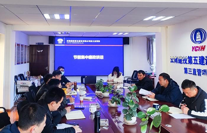 春節(jié)將至,為進一步嚴明各項紀律,營造節(jié)日期間風清氣正的氛圍,1月17日上午,第三直管項目部黨支部開展節(jié)前黨風廉政建設專題會,直管部在昆班子成員、項目負責人、科室負責人參加會議。