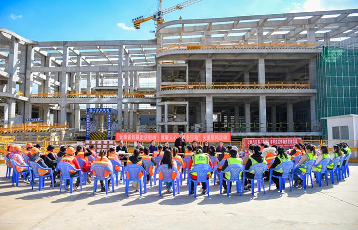 12月28日,云南省婦聯(lián)黨組書記、主席農(nóng)布央宗率隊(duì)到五公司負(fù)責(zé)施工的婦女兒童發(fā)展中心建設(shè)項(xiàng)目調(diào)研并開展“情暖人心·暖冬行動(dòng)”慰問活動(dòng),為現(xiàn)場(chǎng)60余名女性產(chǎn)業(yè)工人送去節(jié)日關(guān)懷與溫暖。云南省婦聯(lián)黨組成員、副主席陳芳主持活動(dòng)。