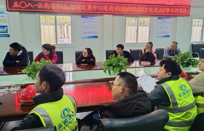 1月3日,五〇八直管部紀(jì)檢委員組織云南省婦女兒童發(fā)展中心建設(shè)項(xiàng)目項(xiàng)目經(jīng)理、經(jīng)濟(jì)、材料管理等關(guān)鍵崗位管理人員觀看集團(tuán)內(nèi)警示教育片《貪欲是禍》,共27人參加。