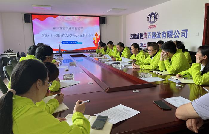 5月6日上午,第三直管項(xiàng)目部黨支部組織開(kāi)展專題黨課,集中學(xué)習(xí)《中國(guó)共產(chǎn)黨紀(jì)律處分條例》。直管部在昆黨員、關(guān)鍵崗位人員參加。
