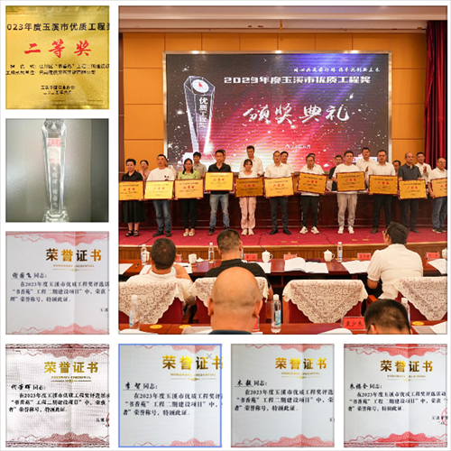 近日,在2023年度玉溪市優(yōu)質(zhì)工程獎(jiǎng)?lì)C獎(jiǎng)典禮上,由公司五〇一直管項(xiàng)目部負(fù)責(zé)施工的江川區(qū)“書香苑”工程二期建設(shè)項(xiàng)目榮獲“2023年度玉溪市優(yōu)質(zhì)工程二等獎(jiǎng)”榮譽(yù),項(xiàng)目經(jīng)理謝國飛榮獲“優(yōu)秀項(xiàng)目經(jīng)理”稱號(hào),項(xiàng)目技術(shù)負(fù)責(zé)人代榮輝、項(xiàng)目管理人員木毅、李智以及朱福全等4名同志榮獲“突出貢獻(xiàn)者”稱號(hào)。