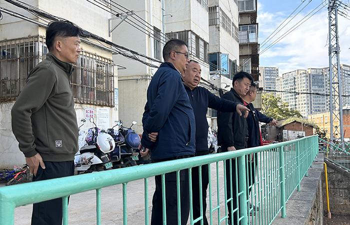 匡浩一行全面了解小區(qū)物業(yè)的安全管理、環(huán)境衛(wèi)生和工作人員生活情況,并提出工作要求。