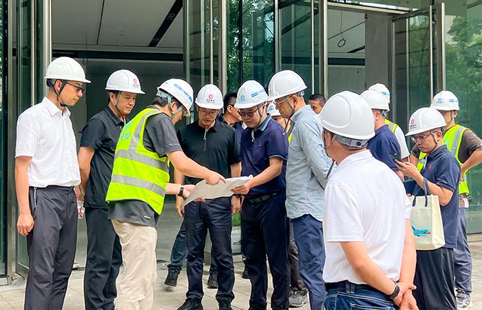 李軍一行深入項(xiàng)目現(xiàn)場(chǎng),通過查閱施工圖紙、實(shí)地查看辦公樓功能布局及使用效果,全面了解施工組織及現(xiàn)場(chǎng)管理情況,對(duì)項(xiàng)目當(dāng)前的進(jìn)度推進(jìn)和質(zhì)量管理成效表示肯定。