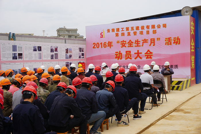 技術(shù)支持: 方森科技 2016年6月5日上午,在保山市中等專業(yè)學(xué)樣遷建項目宿舍樓工地現(xiàn)場,結(jié)合公司安全生產(chǎn)月活動的開展,第四直管項目部黨支部啟動了“兩學(xué)一做”學(xué)習(xí)教育活動——做合格黨員2016年平安工地建設(shè)活動。