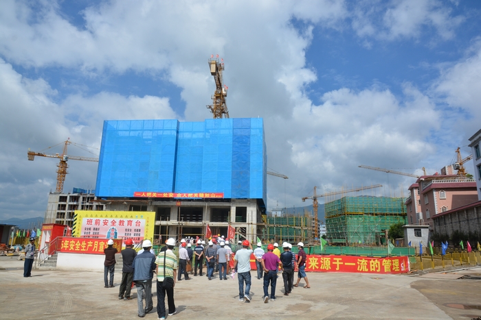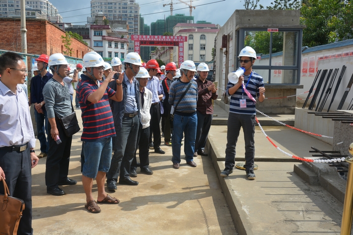 會(huì)前,來(lái)自玉溪市八縣一區(qū)質(zhì)監(jiān)系統(tǒng)的相關(guān)人員參觀了正在施工的工地現(xiàn)場(chǎng),了解了項(xiàng)目部在質(zhì)量通病治理的相關(guān)措施,重點(diǎn)學(xué)習(xí)了項(xiàng)目工序樣板區(qū)、鋁合金模板的使用情況和成效。
