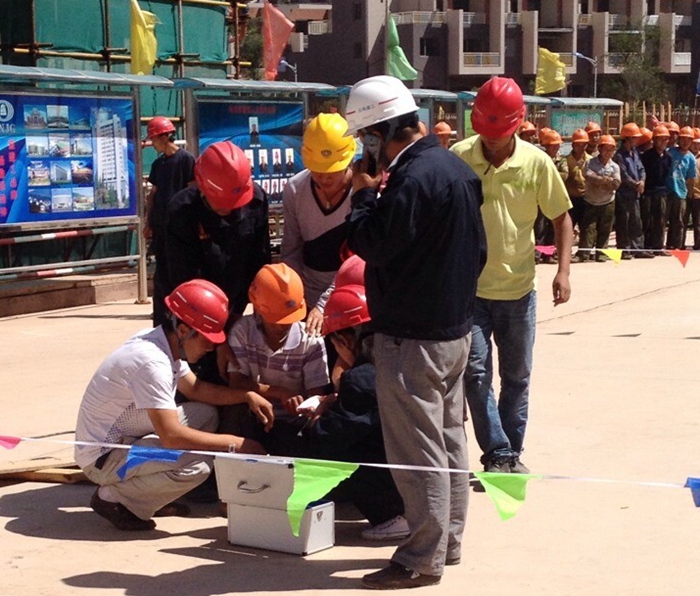 技術(shù)支持: 方森科技 6月25日下午15點,由五〇三直管項目部施工的楚雄陽光花園小區(qū)三期保障性住房項目部開展消防演練。楚雄市住房和城鄉(xiāng)建設(shè)局副局長趙興副和楚雄市住建局工程質(zhì)量安全監(jiān)管科副科長申宇等,帶領(lǐng)楚雄市多個在建工地人員150余人,到由演練現(xiàn)場參觀學(xué)習(xí)。