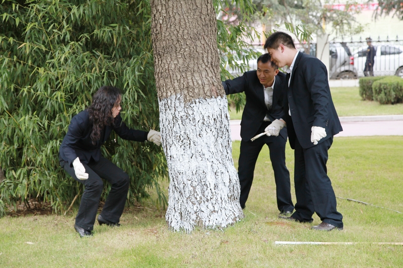 技術(shù)支持: 方森科技 2012年11月7日下午,物業(yè)管理公司全體員工為公司機(jī)關(guān)的綠化樹刷石灰水,刷好的樹木遠(yuǎn)遠(yuǎn)看去,整齊而又漂亮。物業(yè)管理公司將在正常開展工作的情況下,對公司機(jī)關(guān)及小團(tuán)山生活區(qū)的綠化樹進(jìn)行粉刷行動(dòng),通過這次行動(dòng)來美化職工生活區(qū),喜迎黨的十八大勝利召開。