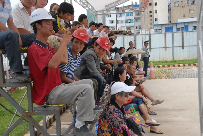 第四直管部全體籃球隊(duì)員在賽前以一曲合唱——《和你一樣》拉開了本次比賽的序幕,而相對(duì)于歌曲的清新,直管部準(zhǔn)備的口笛、塑料巴掌等“秘密武器”可是為整個(gè)比賽添加了足夠的激情與歡樂。公司機(jī)關(guān)和五〇三直管部也組織了各自的啦啦隊(duì)前往工地為隊(duì)員們加油助威。