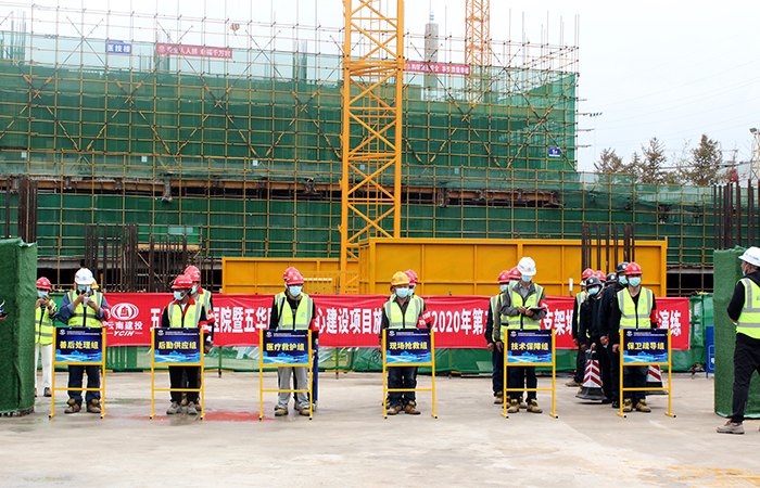 為了進一步完善一線項目部的應(yīng)急機制,檢查應(yīng)對突發(fā)事件所需應(yīng)急隊伍、物資、裝備、技術(shù)等方面的準(zhǔn)備情況,檢驗和完善應(yīng)急預(yù)案的實用性和可操作性,提高一線項目人員的應(yīng)急處置能力,公司于9月29日早上9時在五華醫(yī)院項目部組織開展第三季度模板支架坍塌事故應(yīng)急演練。