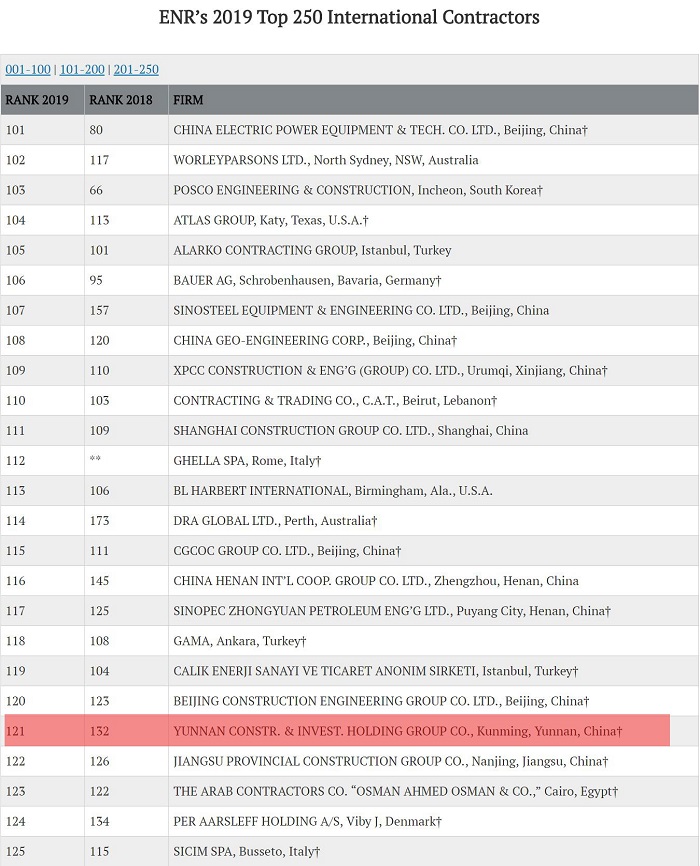 近日,2019年度美國《工程新聞紀錄(ENR)》“全球最大250家國際承包商”榜單發(fā)布,集團再次入圍,名列121位,比上年提升11位,位列進入榜單的中國企業(yè)第35名。至此,集團已連續(xù)10年入選ENR國際承包商250強企業(yè)。 近年來,集團積極響應(yīng)“一帶一路”倡議,積極投身云南省建設(shè)面向南亞東南亞輻射中心戰(zhàn)略布局,“勤修內(nèi)功”全面打造包括海外投資和新興產(chǎn)業(yè)投資在內(nèi)的“…
