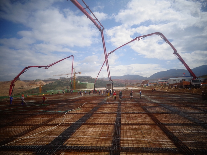 2016年6月25日,大理海東中學(xué)風(fēng)雨操場(chǎng)頂板高支?;炷另樌麧仓瓿?。 早上6:00,由第九直管項(xiàng)目部負(fù)責(zé)施工的大理海東山地新城中學(xué)校區(qū)建設(shè)項(xiàng)目部風(fēng)雨操場(chǎng)3臺(tái)汽車泵已經(jīng)到位、混凝土罐車已經(jīng)到位、4名負(fù)責(zé)風(fēng)雨操場(chǎng)的值班工長(zhǎng)已經(jīng)到位、實(shí)驗(yàn)員已經(jīng)到位、混凝土班組36名操作人員已經(jīng)到位、鋼筋班組4名值班人員已經(jīng)到位、5名架子工已...