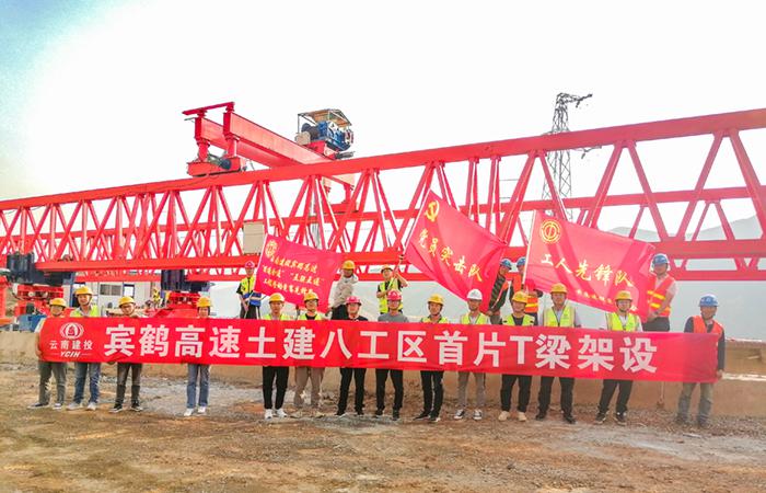 賓鶴高速項目八工區(qū)第一片T梁成功架設(shè)