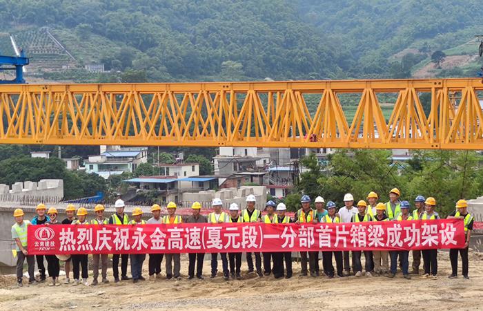 路橋三部永金高速一分部首片箱梁成功架設