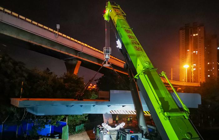 菊華立交項(xiàng)目最后一跨鋼箱梁成功吊裝就位