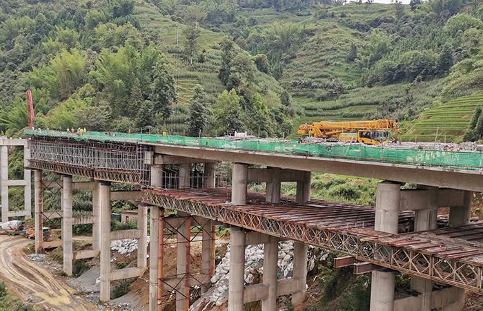 6月26日,在路橋五部負(fù)責(zé)施工的元綠高速七分部左幅阿德1號(hào)大橋施工現(xiàn)場(chǎng),五聯(lián)現(xiàn)澆箱梁順利澆筑完成,標(biāo)志著該項(xiàng)目橋梁主體工程進(jìn)入了良好的沖刺階段。?元綠高速澤初立交區(qū)包含主線橋梁5座,橋梁全長(zhǎng)左幅2034.66米、右幅2237.88米,設(shè)置匝道橋梁5座,橋梁全長(zhǎng)1291.12米。其中,主線阿德1號(hào)大橋位于元陽(yáng)至綠春高速公路澤初互通范圍內(nèi)的主線橋梁,為雙幅橋梁,左幅全長(zhǎng)612.4米,起點(diǎn)樁號(hào)為ZK35…
