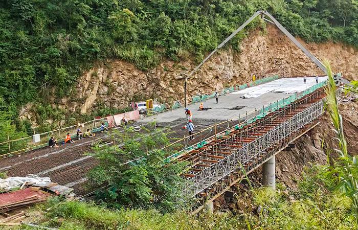 10月6日,元綠高速二分部太平寨2號(hào)大橋現(xiàn)澆箱梁澆筑工作順利完成?,F(xiàn)澆箱梁施工2021年春節(jié)后復(fù)工開(kāi)始進(jìn)行,因現(xiàn)場(chǎng)橋址地形陡峭,呈“V”字型,經(jīng)多方技術(shù)人員研究探討后決定采用復(fù)合式支架技術(shù)完成上部結(jié)構(gòu)施工。在施工過(guò)程中,項(xiàng)目部極積與上級(jí)單位溝通解決統(tǒng)供材料、農(nóng)民工工資問(wèn)題,與供應(yīng)商協(xié)商保障水泥、砂、石等原材料供應(yīng),在高溫、高濕的惡劣環(huán)境下,項(xiàng)目部全體人員克服重重困難,于2021年6月初完成右幅現(xiàn)澆…