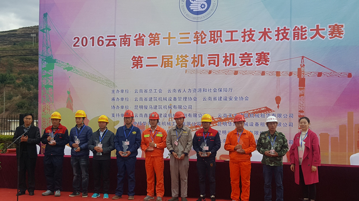 2016年12月20日,公司選派的兩名參賽選手王永強和徐曉偉,在2016云南省第十三輪職工技術(shù)技能大賽第二屆塔機司機競賽中分別獲得了本次大賽第三名和第五名的好成績,公司也獲得了本次大賽的優(yōu)秀組織獎。 比賽中,各參賽選手認真細心,選手們在規(guī)定時間內(nèi)操作塔機完成規(guī)定動作:操作起重機上升、下降、移動穿標桿過五個障礙,然后找到定點...