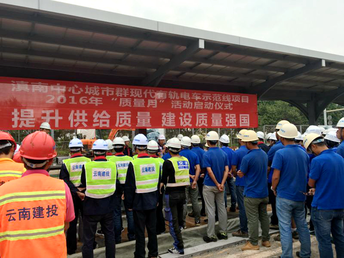 蒙自有軌電車項(xiàng)目部參加“質(zhì)量月”活動啟動儀式