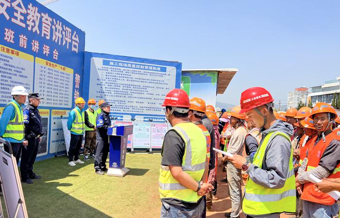 4月11日上午,五華區(qū)金鼎數(shù)字產(chǎn)業(yè)園(一期)項目聯(lián)合虹山派出所、黃土坡社區(qū)開展“普法強基”進(jìn)項目活動,項目部管理人員及所有工人共計80余人參加?;顒又?,虹山派出所所長郭強結(jié)合真實案例,耐心細(xì)致地向工人們講解了防范電信網(wǎng)絡(luò)詐騙、賭博、吸毒、道路交通安全、農(nóng)民工實名制等方面的法律法規(guī),引導(dǎo)工人提高自身法律意識和安全防范意識,遠(yuǎn)離不法行為和違法犯罪活動。副所長陸永鋒運用通俗易懂的語言對電信網(wǎng)絡(luò)詐騙的作案…